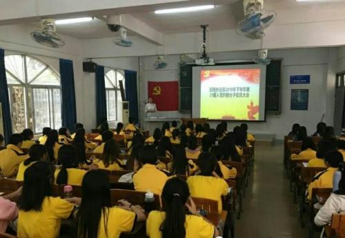 12月17日12:30分,应用外语系党支部在执着楼102召开“学习十九大精神,争做文明大学生”主题学习活动。参会人员有外语系全体在校入党成员学生及17.18级党务助理,本次会议由党务助理黄少纯主持。