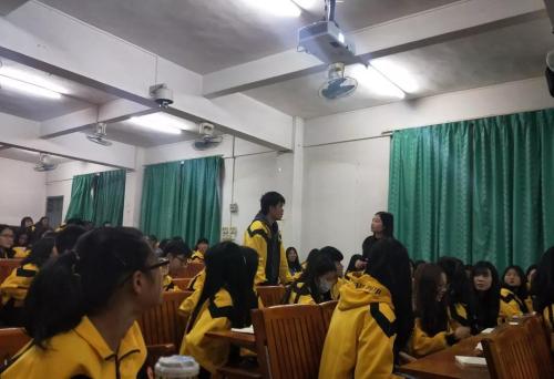 2018年12月18日晚上7点30分,应用外语系党支部开展“榜样的力量”经验分享为主题的讲座于百川楼101进行。出席本次会议的有应用外语系团学会主席廖争妍,31期入党积极分子,18团学会考核干事以及18党务助理考核干事。本次会议主要由应用外语系团学会主席廖争妍讲话。