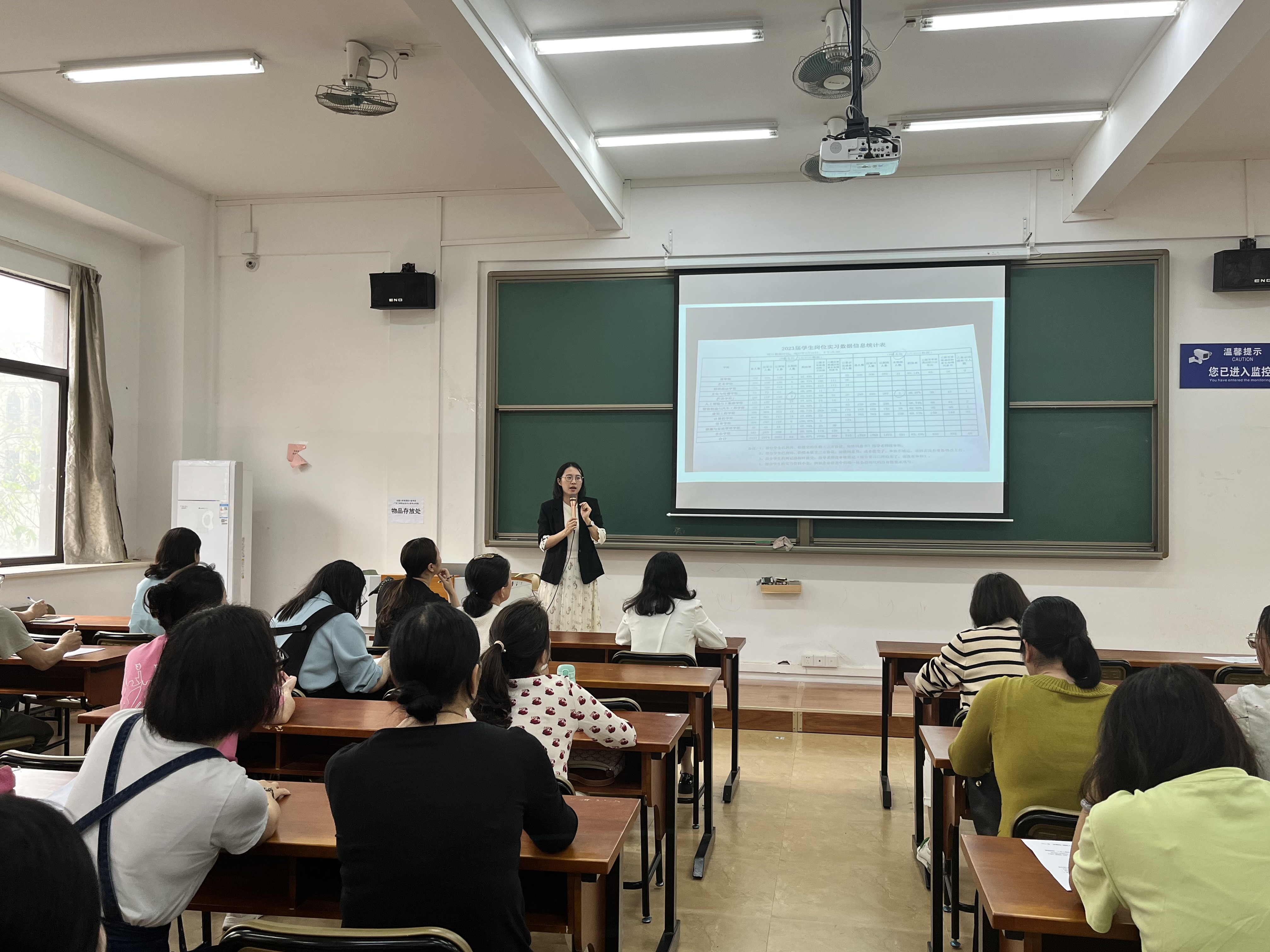 紧接着,由刘蔓副书记传达关于全国文明典范城市迎评工作会议精神,她提出全体教师要提高思想认识,充分认识到本次评估的重要性,要求大家要共同参与到全国文明典范城市迎评工作中去。同时,刘蔓副书记在师德师风建设、班主任工作等方面也提出具体要求,希望全体教职工要以主人翁的姿态强化责任担当,高效率、高质量推动学院各项工作的开展。