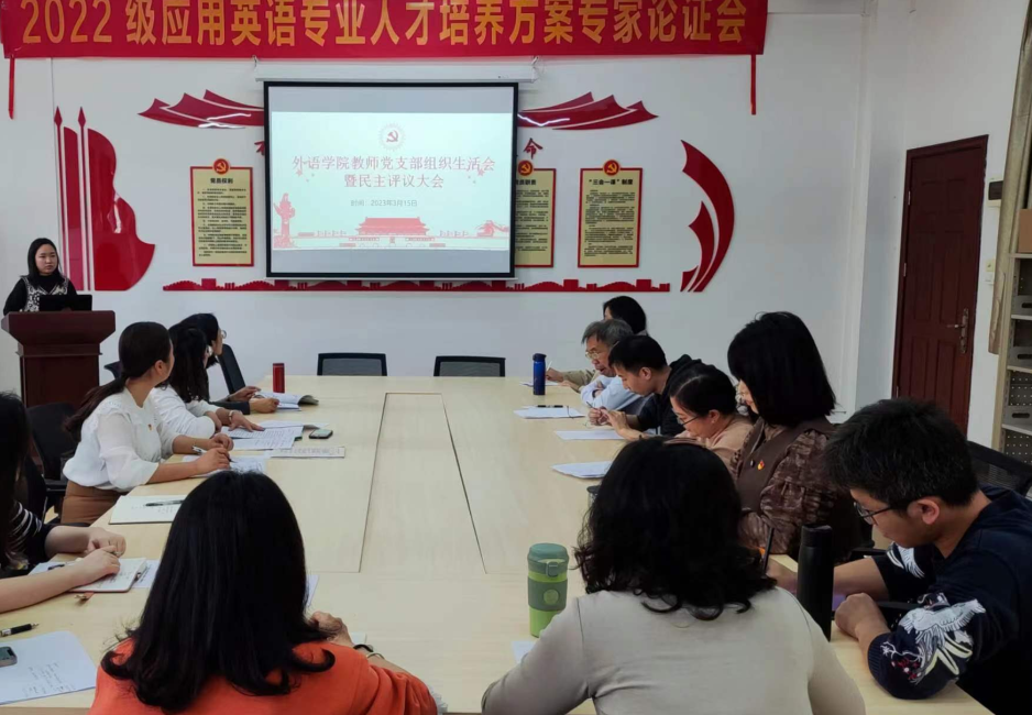 为深入学习贯彻党的二十大精神,进一步提高党员的思想素质和工作能力,反躬自省,增强党性意识。2023年3月15日下午14点,外语学院教师党支部于格物楼101室开展组织生活会暨民主评议大会。外语学院全体党员教师出席此次会议,会议由教师党支部书记马莹妮主持。