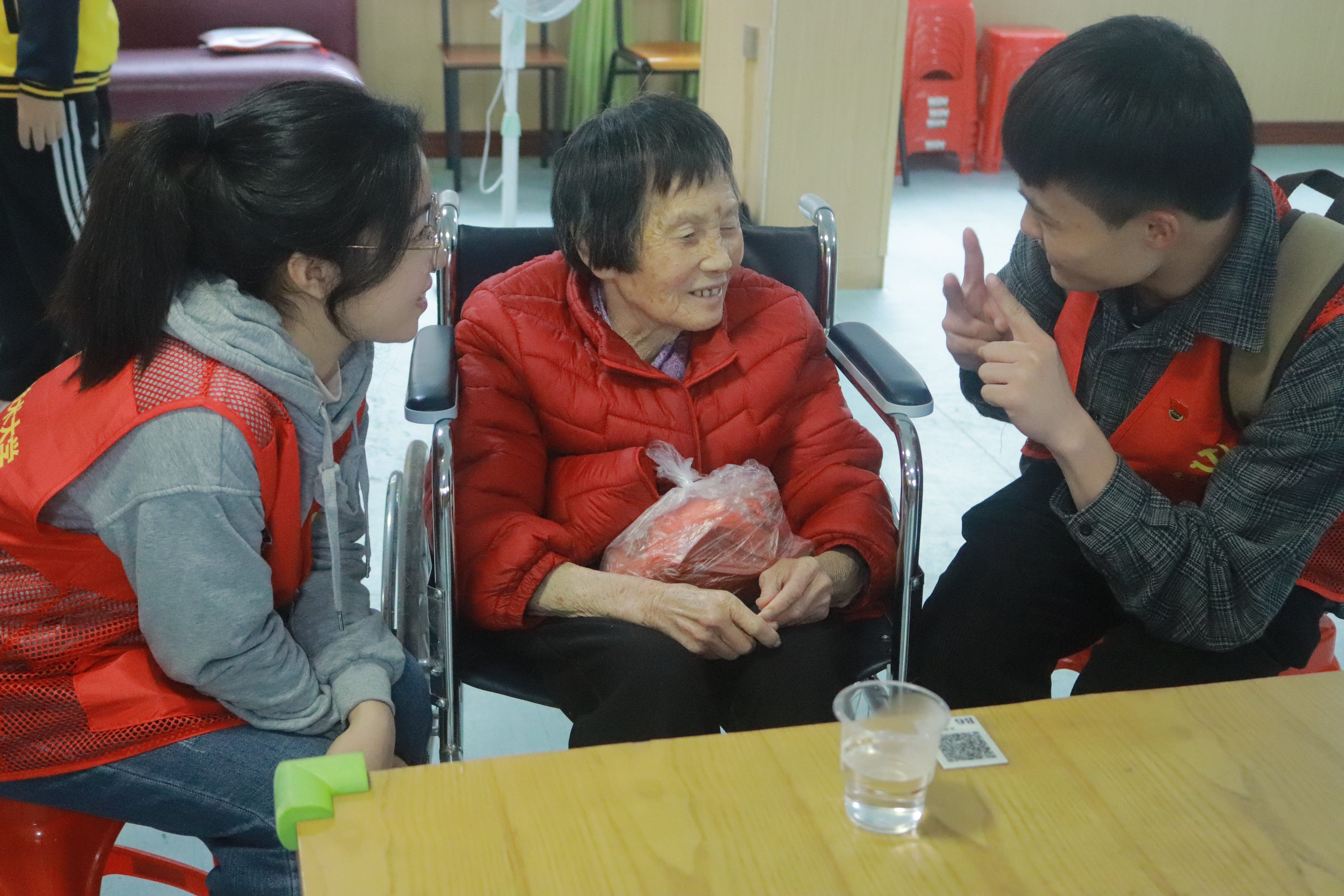 活动中,党员们分成若干小组对老人们进行慰问。在颐养院工作人员带领下,有的与老人聊聊家常,关心老人们的身体健康和生活起居和餐饮等情况;有的党员为老人们分发牛奶、水果、零食等慰问品,叮嘱老人们好好保重身体,享受幸福的晚年生活,并送上美好祝福;还有部分党员同志深入宿舍区,将慰问品送到了行动不便的老人床前。