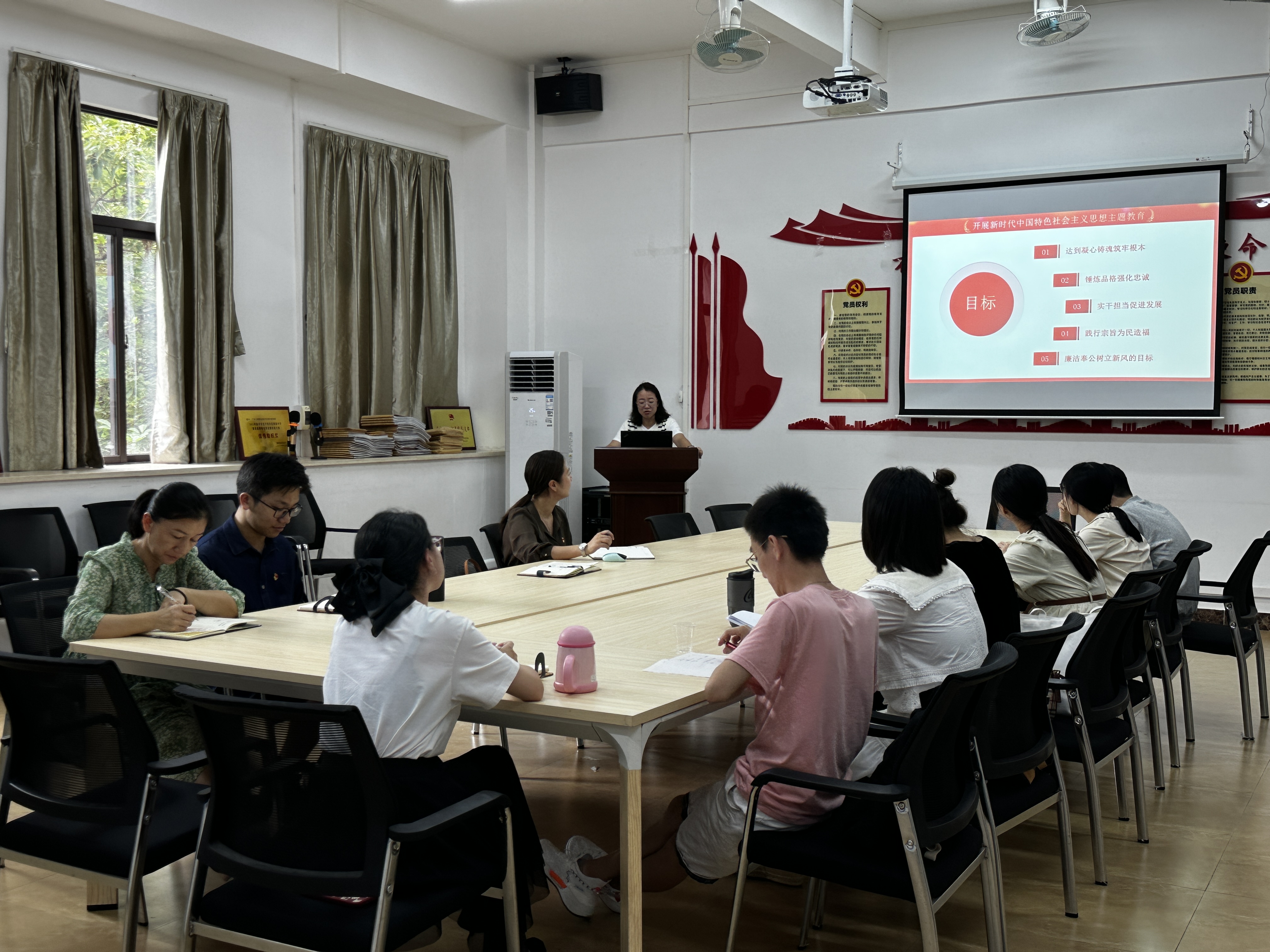 马莹妮以本次主题教育为契机,带领全体党员教师深刻领悟“八个明确”“十四个坚持”的意义,深刻理解“十三个方面成就”,深刻领会和把握习近平新时代中国特色社会主义思想的世界观、方法论和贯穿其中的立场观点方法,持续加强党的创新理论武装,不断攀登新的思想高峰。