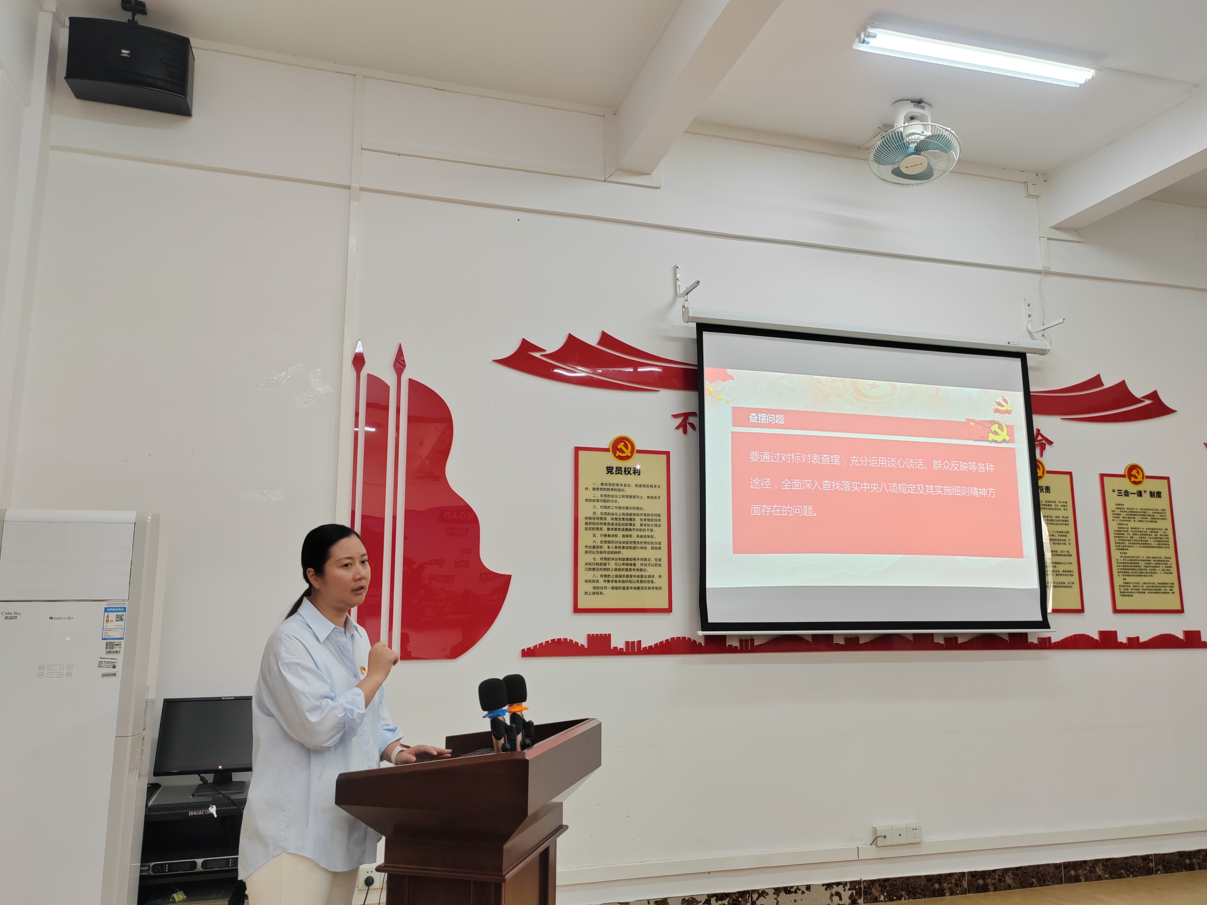 其次,组织支委学习中央八项规定精神的核心内容,明确了本次学习教育的目标任务、时间安排及具体要求。她强调,全体党员干部要深刻领会中央八项规定精神的政治内涵,以高度的政治自觉推进作风建设常态化、长效化。