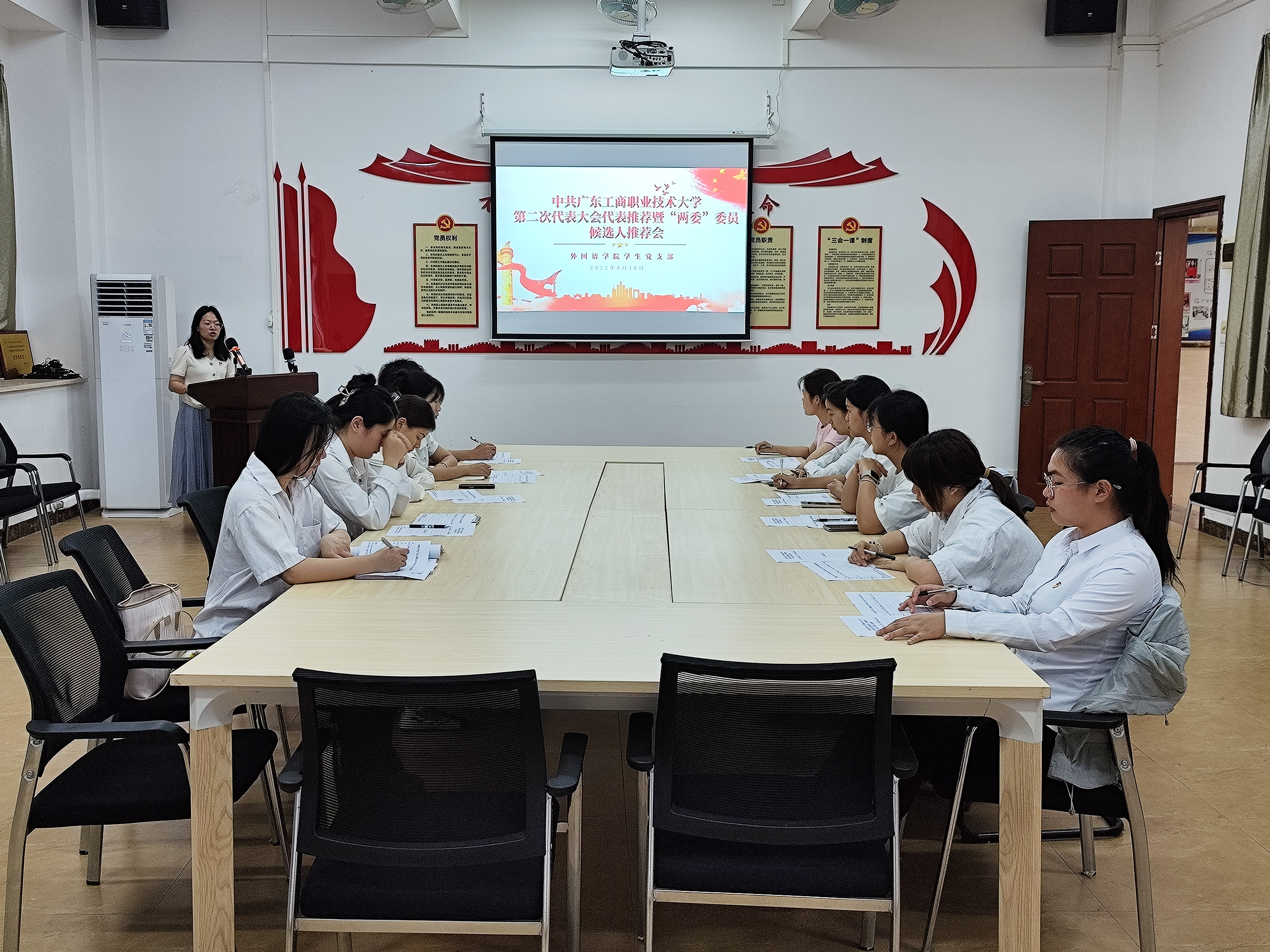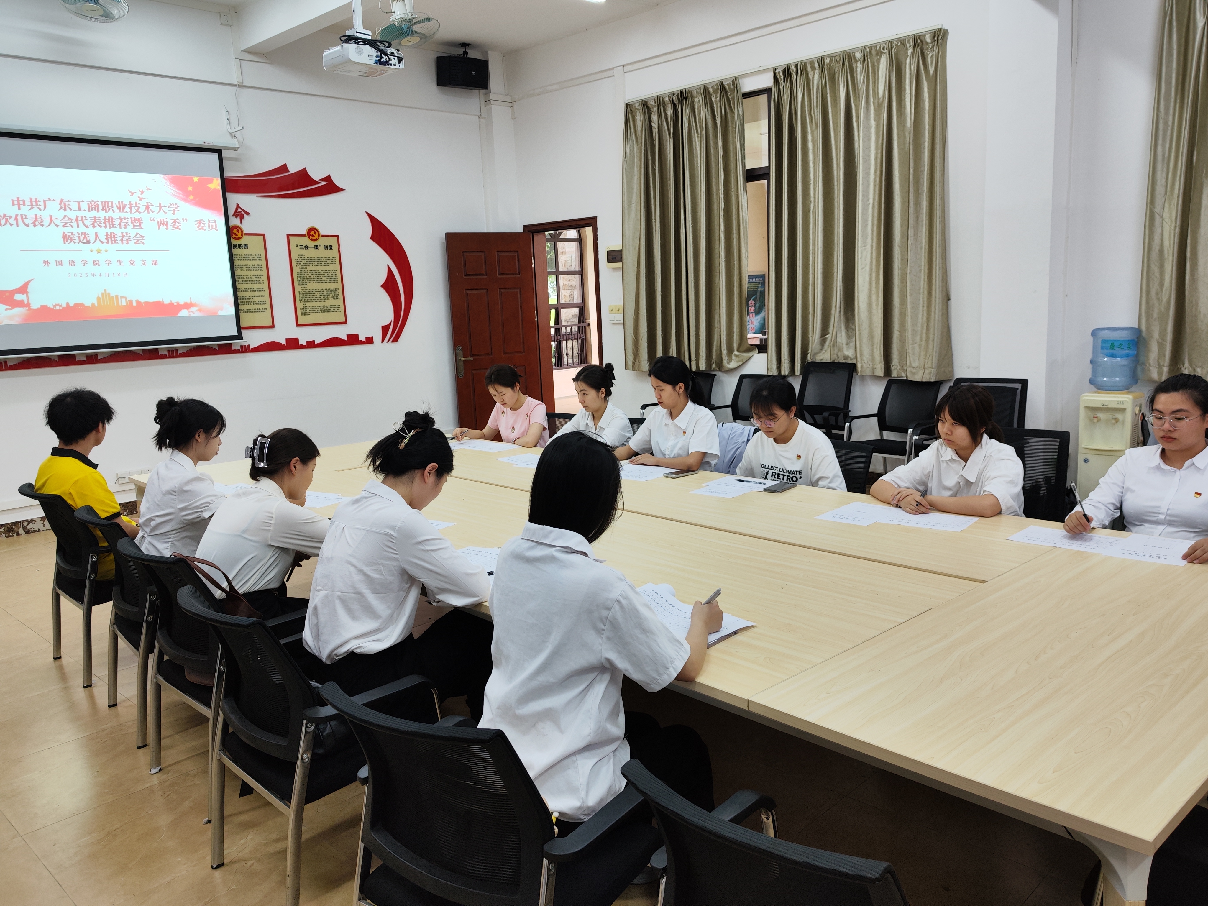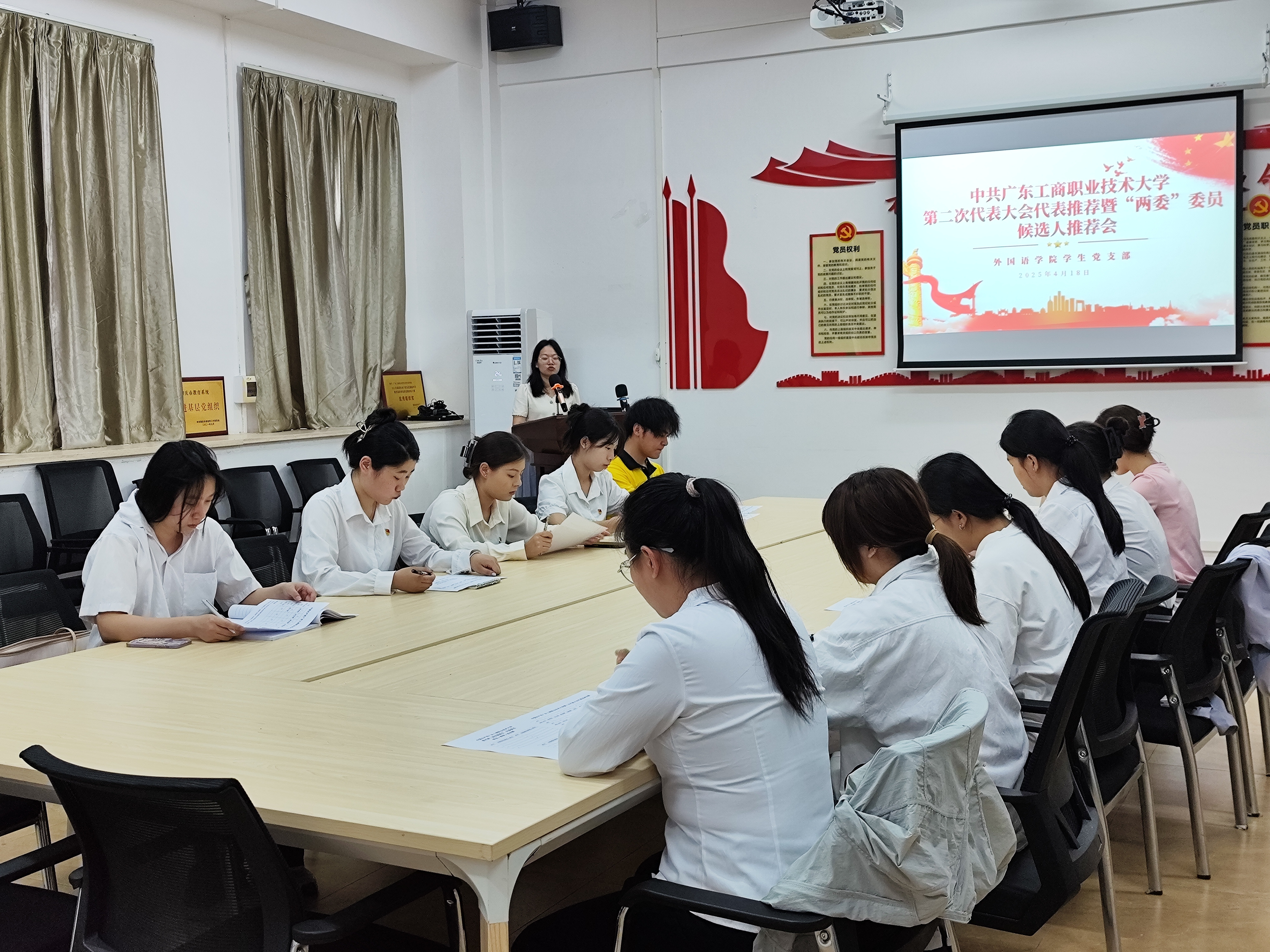 为扎实做好中共3044永利,3044永利委员会第二次代表大会筹备工作,严把大会代表和“两委”委员候选人推荐关,根据《中国共产党章程》《中国共产党基层组织选举工作条例》要求,2025年4月18日下午14时45分,3044永利学生党支部于格物楼101室举行中共3044永利,3044永利第二次代表大会代表推荐暨“两委”委员候选人推荐会,本次会议由学生党支部书记郑丽玉主持,全体在校党员参加会议。